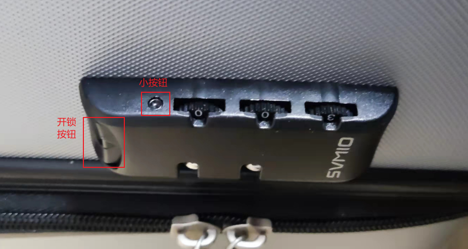 行李箱设置密码 发表于 2022-12-04 分类于 Life Waline: 本文字数: 177 阅读时长 ≈ 1 分钟 百度搜到的设置行李箱步骤为: 拨到正确的密码 按住开锁按钮 拨到新密码 松开开锁按钮 但是试了之后却并不行,我这里用的是爱华仕行李箱,发现密码锁上有个特殊的小按钮,见下图 在设置密码的时候需要用到这个小按钮,亲测有效的步骤应该是: 拨到正确的密码 用细小的物体(比如剪刀)把小按钮捅下去 拨到新密码 用力按下开锁按钮,听到“咔”的一声,被捅下去的小按钮会自动弹回来,设置完毕